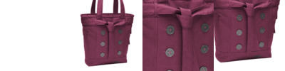 Large metal buttons give this feminine tote a classy look, while padded tech compartments make it perfect for work or school.