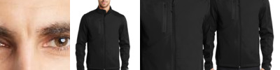 - 100% poly stretch shell bonded to textured grid fleece with a laminated film insert for wind and water resistance
