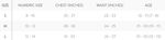 | Chest Width | 16 | 17 | 18 | 19 | 20 |