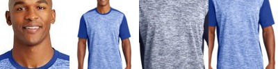 A moisture-wicking, snag-resistant tee with a soft hand. The Electric Heather pattern is on the front and back with colorblock neck, shoulders, sleeves and sides.