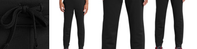 This moisture-wicking jogger is perfect for warm-ups and cool-downs, as well as lounging around the house. 5.5-ounce, 100% polyester Anti-static Elastic waistband with exterior dyed-to-match drawcord Tag-free label Front pockets Self-fabric cuffs