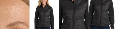 Quilted front and back panels join a wind-resistant, water-resistant soft shell to make the Hybrid a trend-right stretch performance jacket with urban edge.