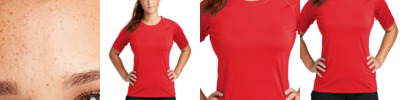 These tees stretch and move with you while youÿ¿re swimming or during any water activity. Designed to combat UV rays and moisture, these breathable and quick-dry tees also have PosiCharge technology to lock-in colors and logos. 5.9-ounce, 90/10 poly/spandex stretch jersey with PosiCharge technology UPF rating of 50 Trim, comfortable fit Tag-free label Raglan sleeves Underarm gussets