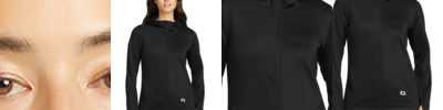 STAY-COOL WICKING STRETCH REFLECTIVE DETAILS 8.6-ounce, 95/5 poly/spandex with stay-cool wicking technology OGIO heat transfer label for tag-free comfort OGIO embossed neck taping Black binding around hood and cuffs Black reverse-coil locking zipper with chin guard Ventilating perforation on center back Reflective O on back right shoulder Front pockets with mesh lining Thumbholes Curved back hem Reflective O on front left hip