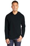 Soft and lightweight, this hoodie works year-round. 6.5-ounce (220 GSM) 55/45 combed ring spun cotton/recycled polyester fleece Cowl neck converts to hood Dyed-to-match drawcords Coverstitch details Back neck tape Slightly longer length 2x2 rib knit cuffs and hem Tear-away label
