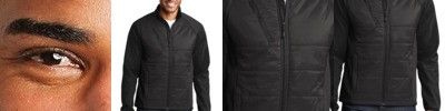 This jacket combines the warmth of low-bulk quilted insulation with flexible soft shell side panels for a trend-right, weather-resistant look. Can be zipped in and secured by snap attachments inside an outer Collective layer 100% polyester woven shell 100% polyester printed lining with 100% polyfill insulation behind the outer quilted woven shell 100% polyester knit bonded to a water-resistant film insert and a 100% polyester microfleece lining at side panels and under arms Slightly longer length Molded center front zipper Front and back waist details Stretch side panels Open front pockets Port Pocket for decoration access Tulip hem