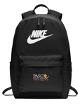 This pack combines simplicity and functionality with its clean design. Padded shoulder straps add an extra element of comfort while you carry your gear. 100% polyester Densely woven polyester provides heavyweight support A zippered main compartment offers room for gear Padded back panel and padded, ergonomically shaped shoulder straps for comfortable carrying Interior sleeve stores a laptop up to 15 Zippered front pouch provides small-item storage A haul loop at the top gives an alternative carrying option Contrast welded Swoosh design trademark Laptop sleeve fits most 15' laptops Dimensions: 17'h x 12'w x 6'd; Approx. 1,224 cubic inches