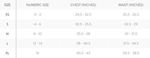 | Chest | 32-34 | 35-38 | 39-41 | 42-45 | 46-49 | 50-52 | 53-56 | 57-60 | 61-64 |